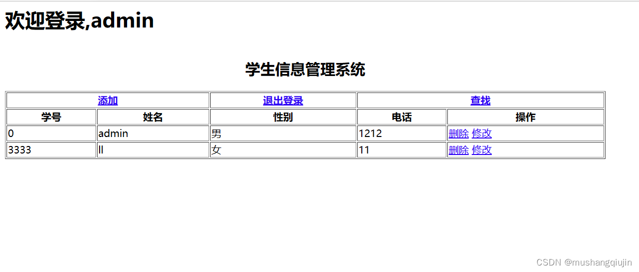 实现注册,登录,修改信息,删除,添加信息,使用mysql数据库,记住会话(session)等功能