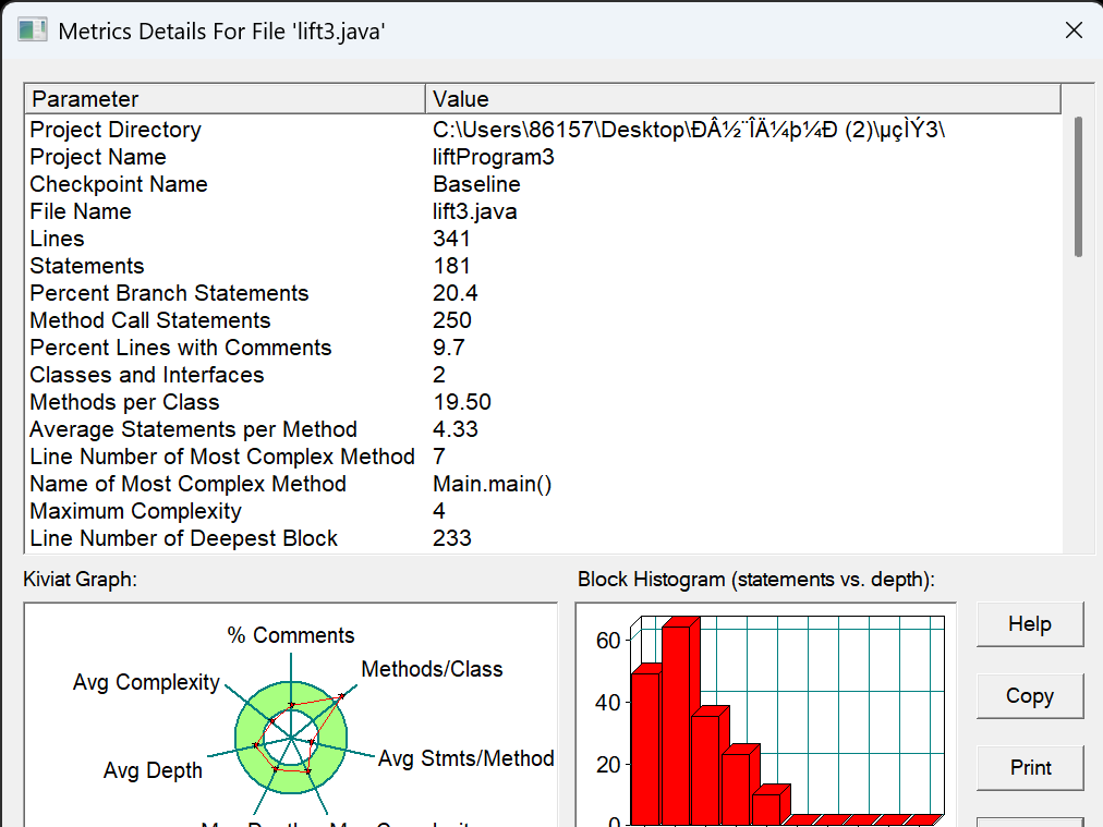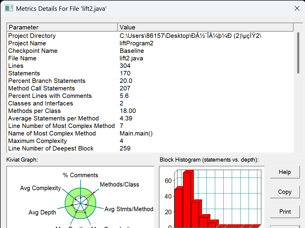 可以看到在电梯运行方法runlift()中,方法的复杂度非常高,达到了59,究其原因,是因为自己将整个电梯运行的过程全部写在了这一个方法之中,没有将其拆分为多个方法,各自执行单一的原则。