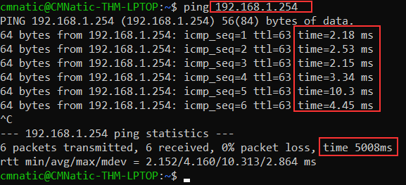 如下面的屏幕截图所示。此测量是使用 ICMP 的回显数据包完成的,然后是来自目标设备的 ICMP 回显回复。