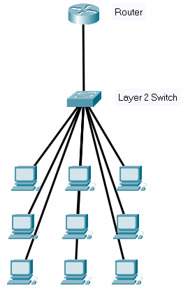 以下图中的第 2 层交换机为例。这些交换机将使用它们的MAC地址将帧(记住这些不再是数据包,因为 IP 协议已被剥离)转发到连接的设备上。