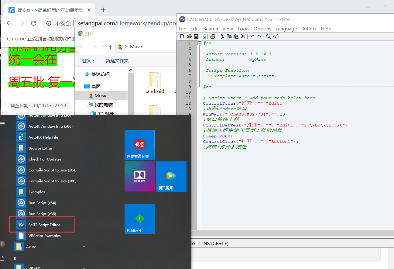 第三步:打开SciTE Script Editor编译器,输入以下内容