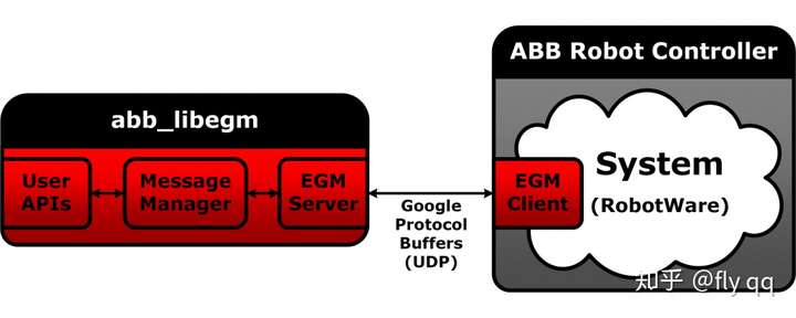 这种对带宽要求会高不少,可能 4ms 左右就需要发送一组关节位置,abb 在实现 EGM 上也使用了 Google ProtoBuf,并采用 UDP 通讯。
