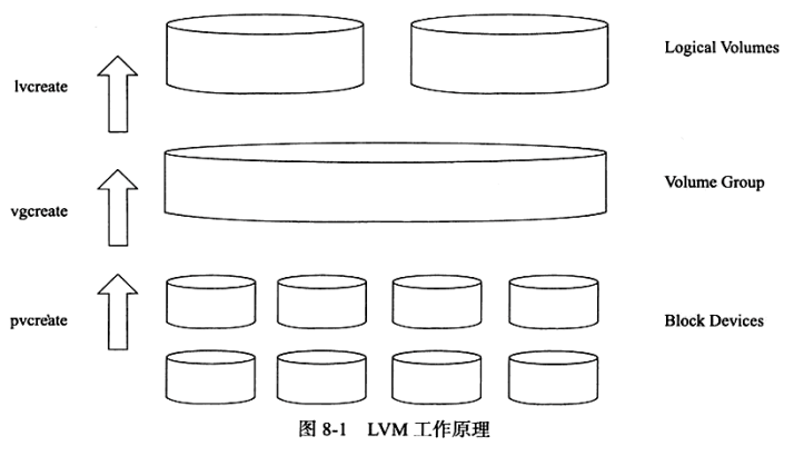 若干个磁盘分区连接为一个整块的卷组(Volume Group),形成一个存储池。管理员可以在卷组上任意创建逻辑卷,并进一步在逻辑卷上创建文件系统。