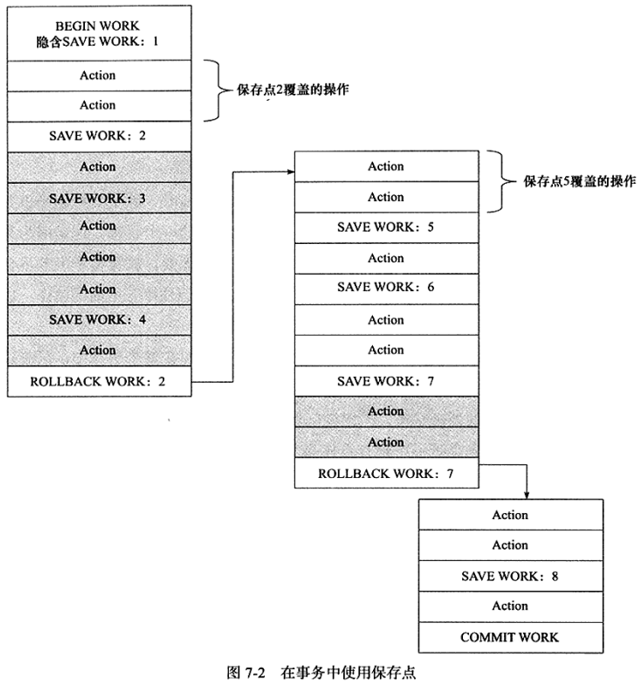 允许事务在执行过程中回滚到同一事务中较早的一个状态。这是因为某些事务可能在执行过程中出现的错误并不会导致所有的操作都无效,放弃整个事务不合乎要求,开销也大。保存点用来通知系统应该记住事务当前的状态,以便当之后发生错误时,事务能回到保存点当时的状态。