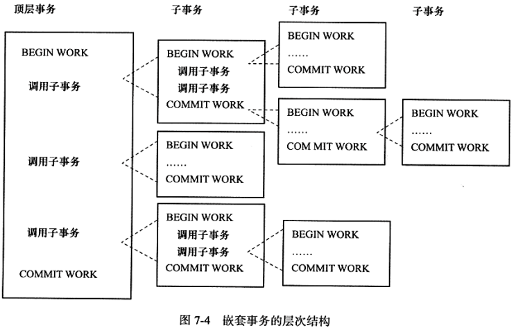 - 嵌套事务(InnoDB存储引擎并不支持)
