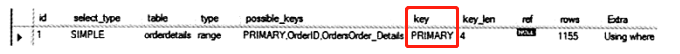 SELECT * FROM orderdetails FORCE INDEX(OrderID)WHERE orderid>10000 and orderid<102000;