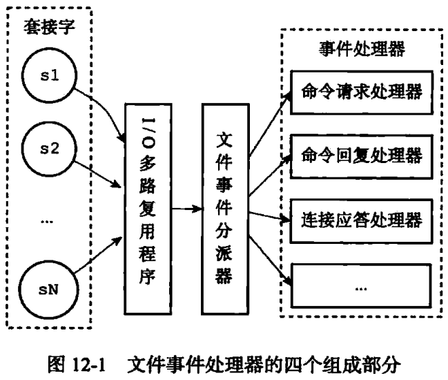 - 事件处理器 服务器会为执行不同任务的套接字关联不同的事件处理器,这些处理器是一个个函数,定义了某个事件发生时,服务器应该执行的动作