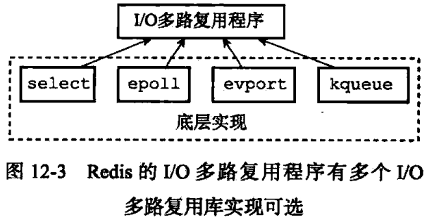 - I/O多路复用程序 监听多个套接字,并向文件事件分派器传送那些产生了事件的套接字。尽管多个文件事件可能会并发地出现,但I/O多路复用程序总会将所有产生事件的套接字都放到一个队列里面,以每次一个套接字的方式向文件事件分派器传送套接字