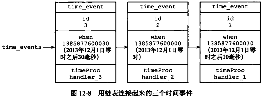 服务器将所有的时间事件都放在一个无序链表中,每当时间事件执行器运行时,就会遍历整个链表,查找所有已到达的时间事件,并调用相应的事件处理器。