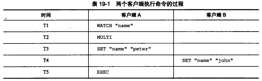假设当前客户端为A,而数据库watched_keys字典的监视了“name”键,那么当客户端A执行SET name命令后,客户端B也向服务器发送了一条SET命令,将“name”的值设为“John”。客户端B的这个SET命令会导致正在监视“name”键的所有客户端的REDIS_DIRTY_CAS标识被打开,其中包括客户端A。之后,当c10086向服务器发送EXEC命令时,因为客户端A的REDIS_DIRTY_CAS标志已经被打开,所以服务器将拒绝执行它提交的事务。