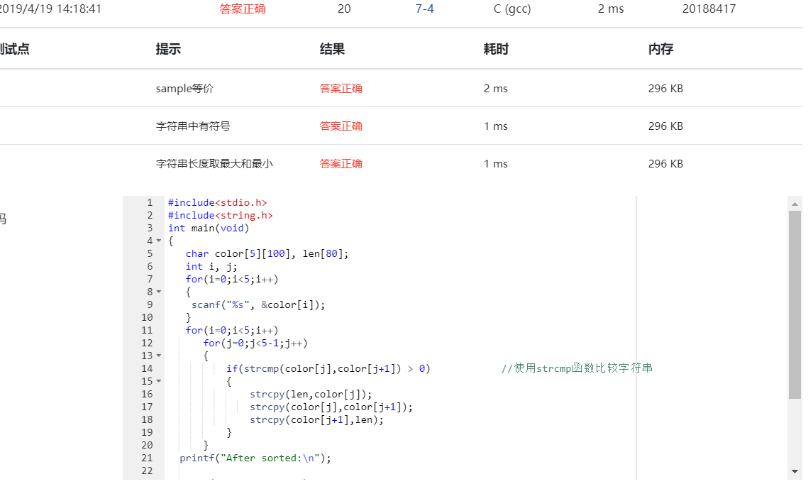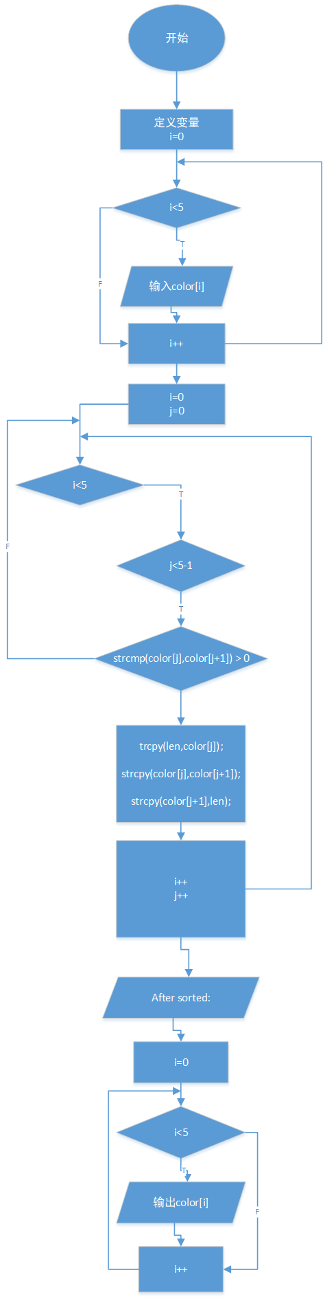 if(strcmp(color[j],color[j+1]) > 0) //使用strcmp函数比较字符串
