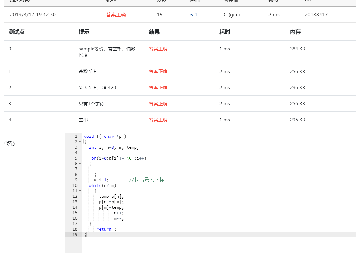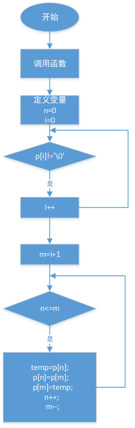 函数f对p指向的字符串进行逆序操作。要求函数f中不能定义任何数组,不能调用任何字符串处理函数。