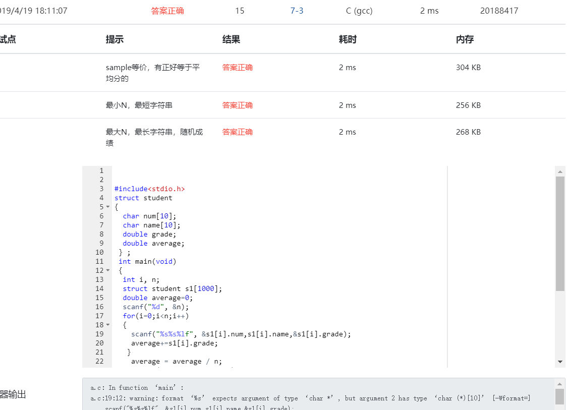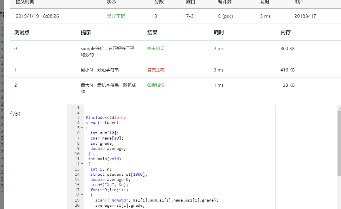 scanf("%s%s%lf", &s1[i].num,s1[i].name,&s1[i].grade);