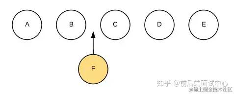 即把 C 更新成 F,D 更新成 C,E 更新成 D,最后再插入 E