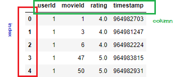 输出:Index(['userId', 'movieId', 'rating', 'timestamp'], dtype='object')