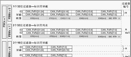 (4) 在同一过滤器组内,按寄存器从小到大编号。FxR1配置的过滤器编号小,FxR2配置的过滤器编号大。