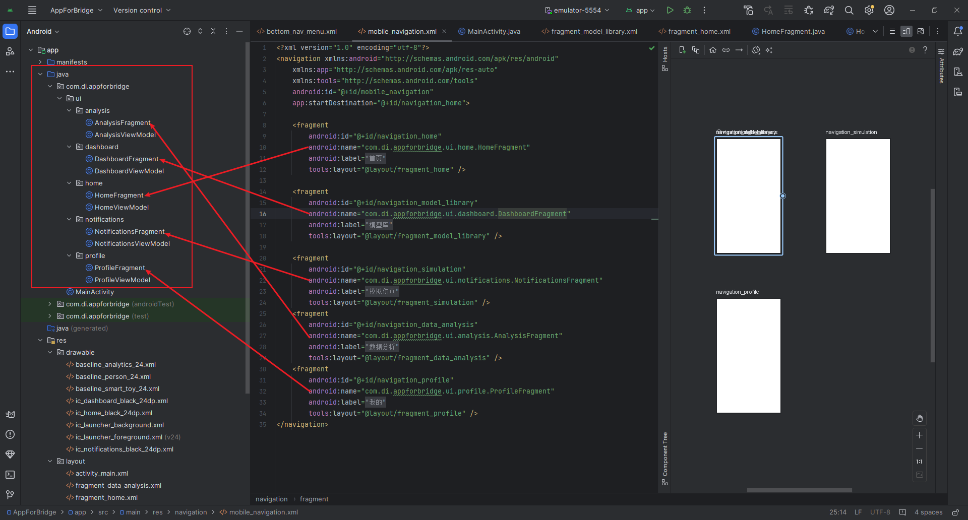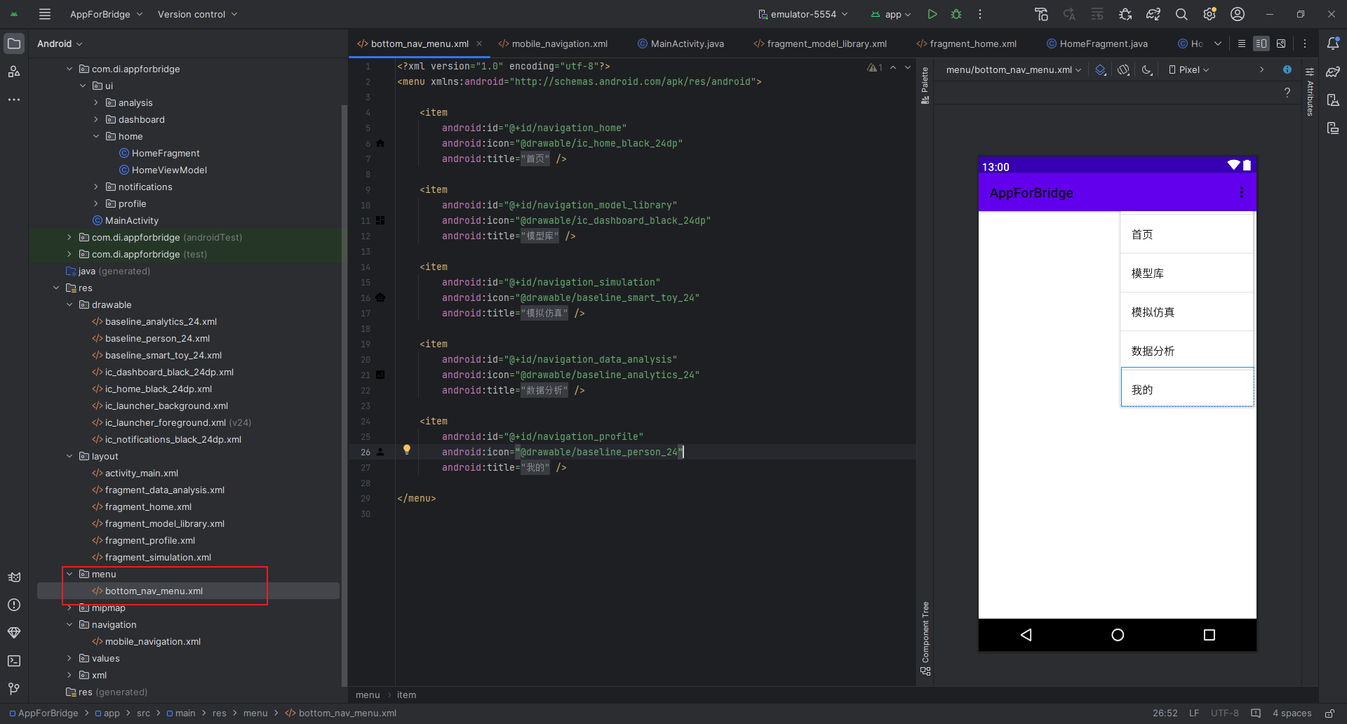 (2)在Layout添加对应的xml页面--新加的页面,内容要和自带的Home等页面类似,方便后续更改