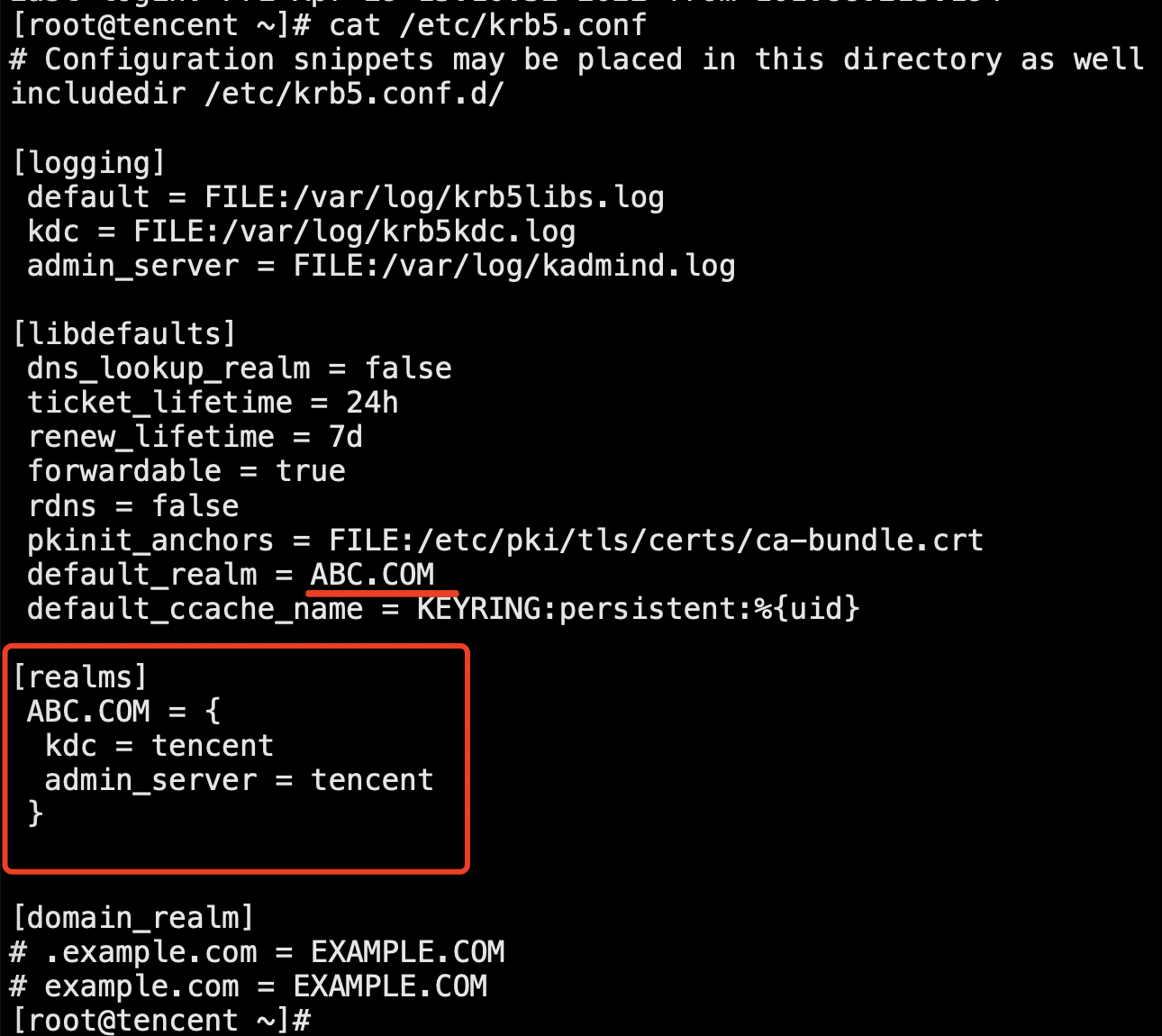admin_server:kadmin服务(即Kerberos administration server)所在节点。