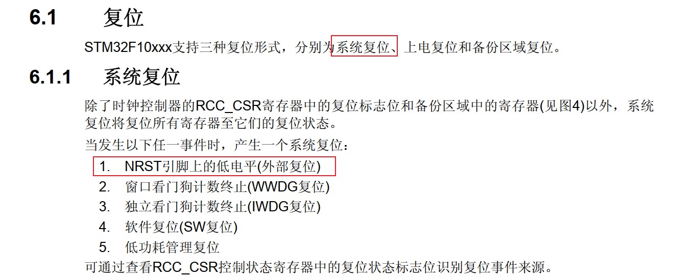 4.1 STM32中文参考手册 复位节 复位方式说明: