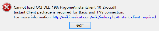 该问题是直接使用Navicat自带的instantclient_10_2造成的。自带的采用的是Basic Lite版本的instantclient。