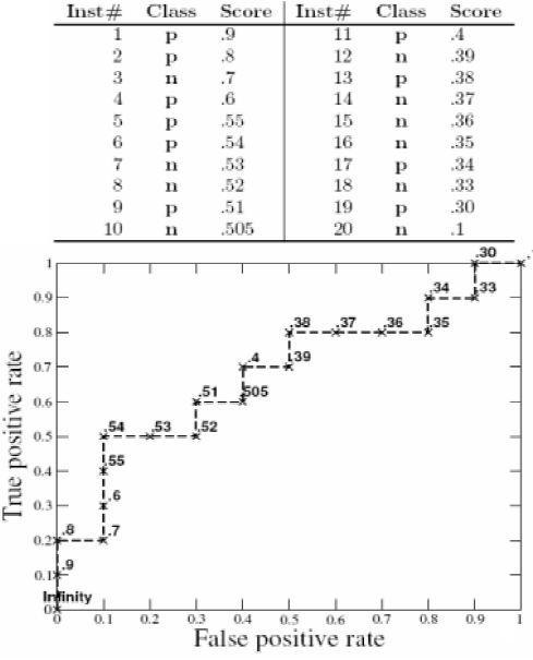 实际工作中,样本数是有限的,所以绘制出来的ROC曲线,往往呈现为阶梯状。