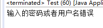 1 public class Test { 2 3 public static void main(String[] args) { 4 UserController userController = new UserController(); 5 try { 6 User user = userController.queryUser("张大三", "111"); 7 System.out.println(user); 8 } catch (MyException myException) { 9 System.out.println(myException.getMessage()); 10 } 11 12 } 13 }