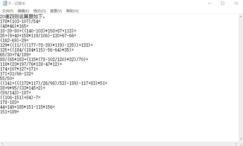 fout<<amount<<"道四则运算题如下:"<<endl;
