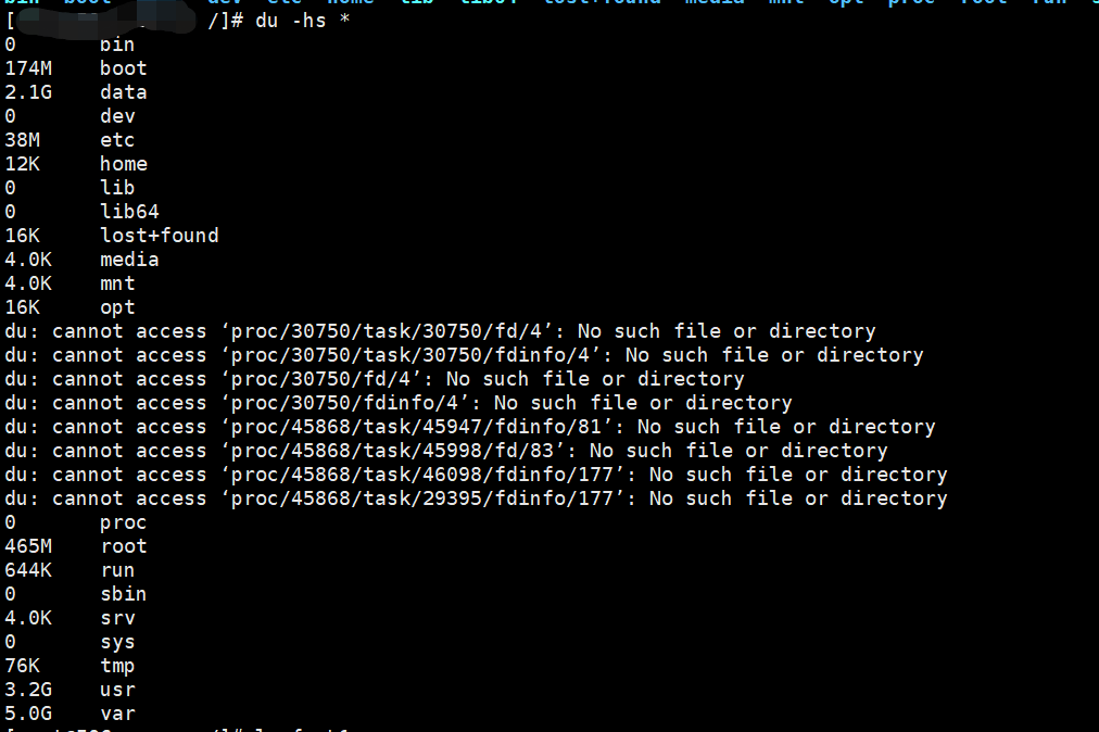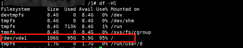 和告警信息一致,接着我们就是要找到导致磁盘空间满的目录或文件。