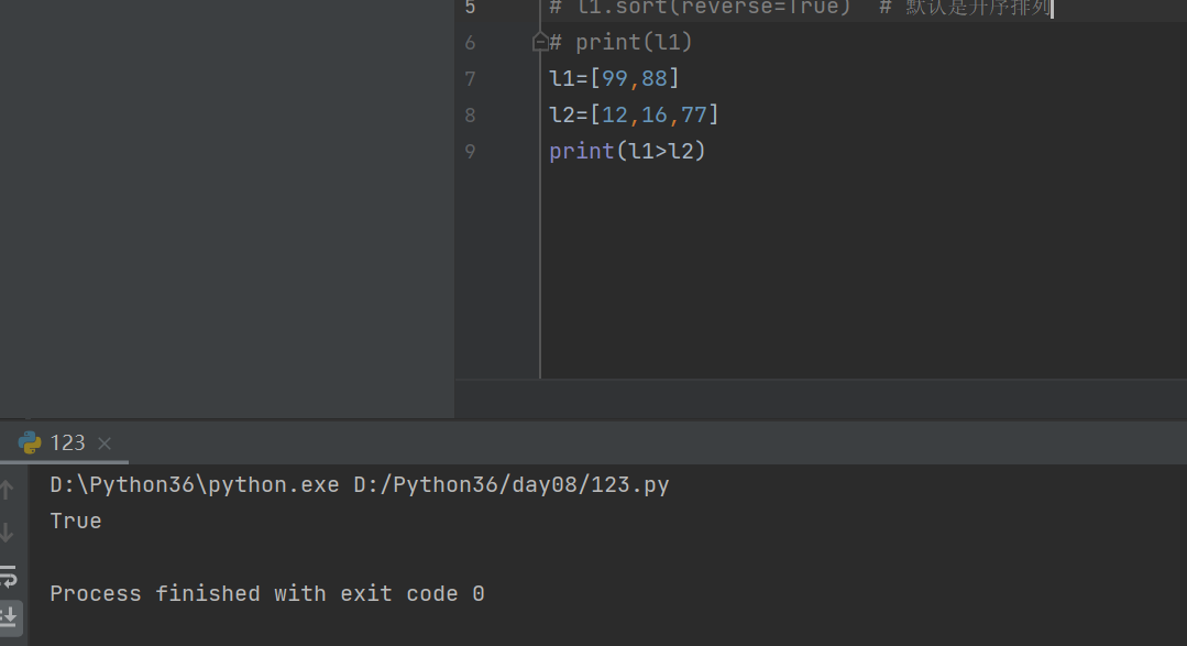 给列表排序,列表中的元素必须是相同的数字类型,否则会报错,默认为升序排列