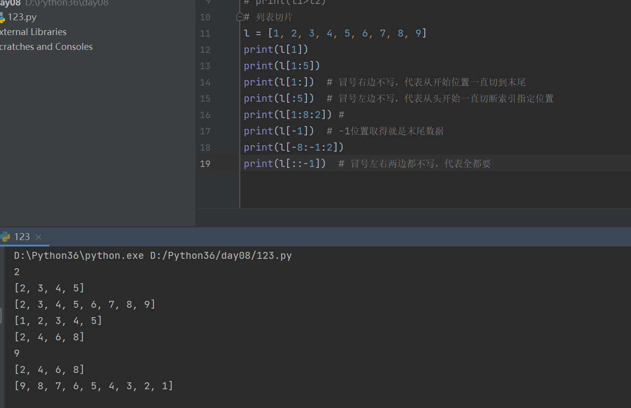 # print(l[::-1]) # 冒号左右两边都不写,代表全都要