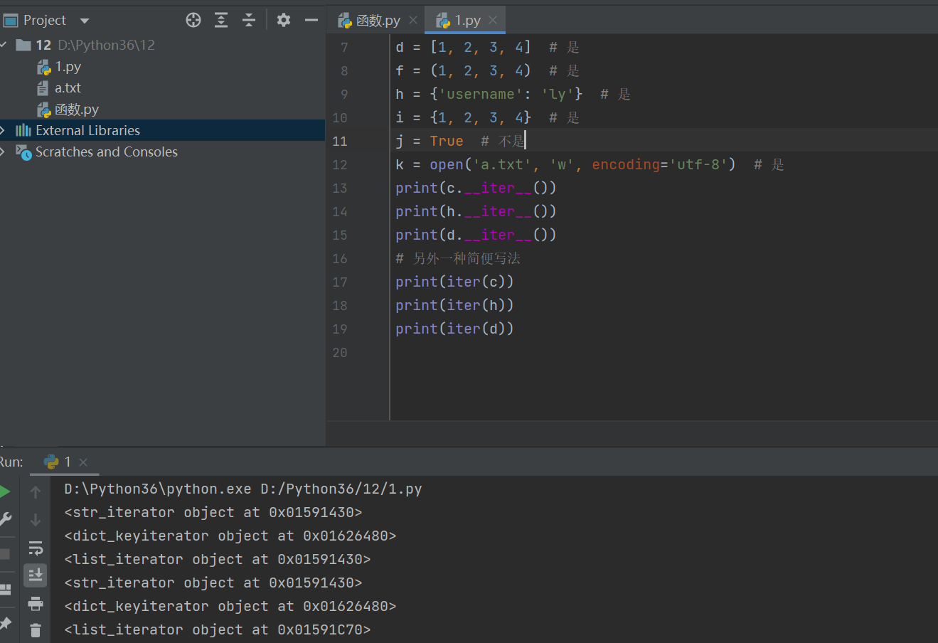 迭代器对象是内置有__iter__(),并且也拥有__next__方法的才是迭代器对象