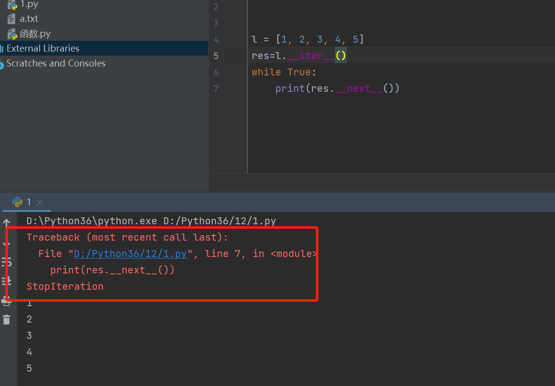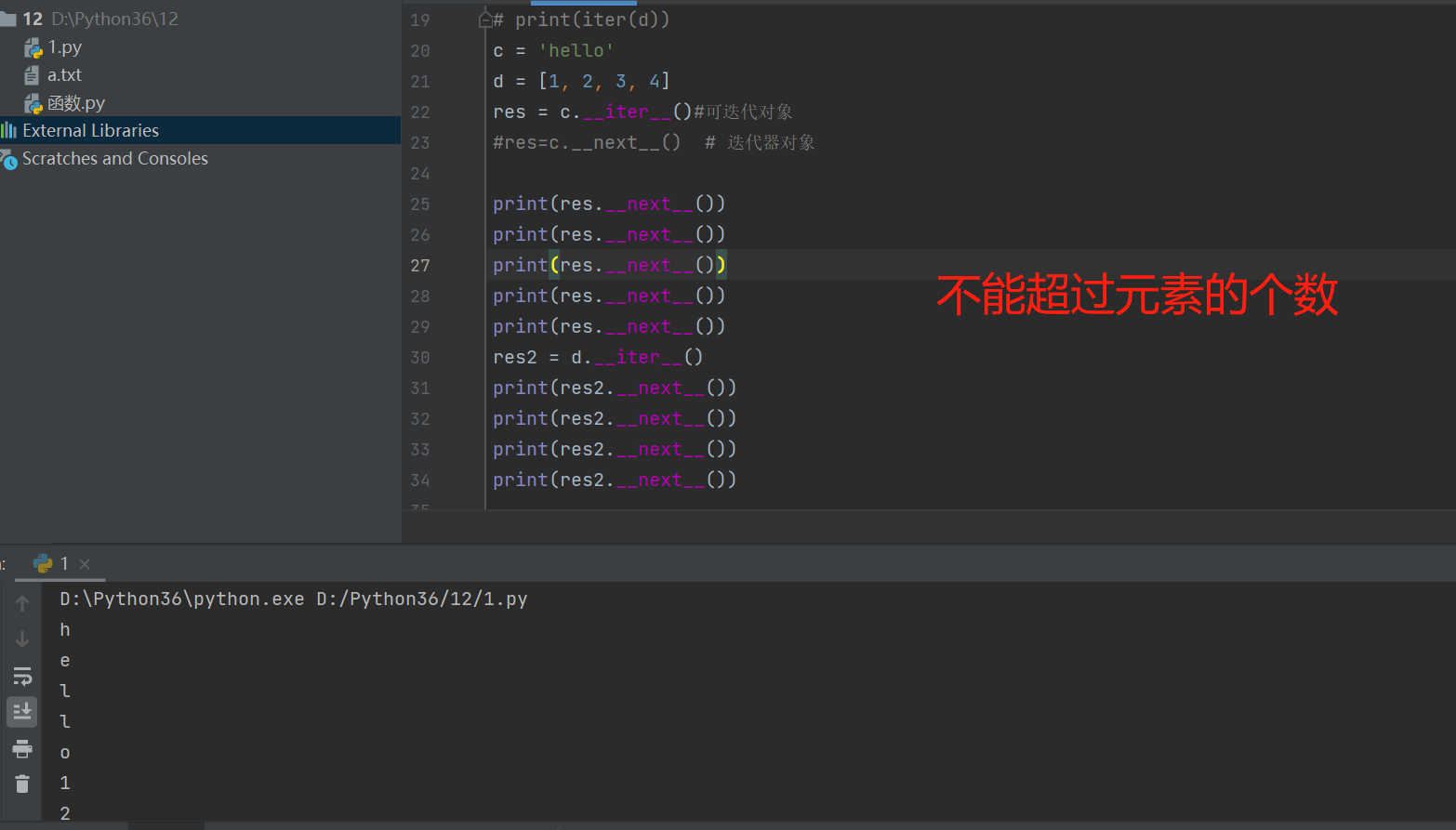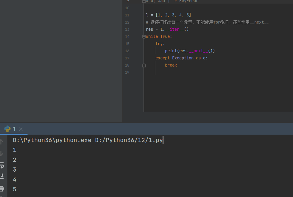 练习.# 循环打印出每一个元素,不能使用for循环,还有使用__next__