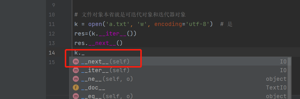 # 文件对象本身就是可迭代对象和迭代器对象(所以不需要__iter__就可以__next__)
