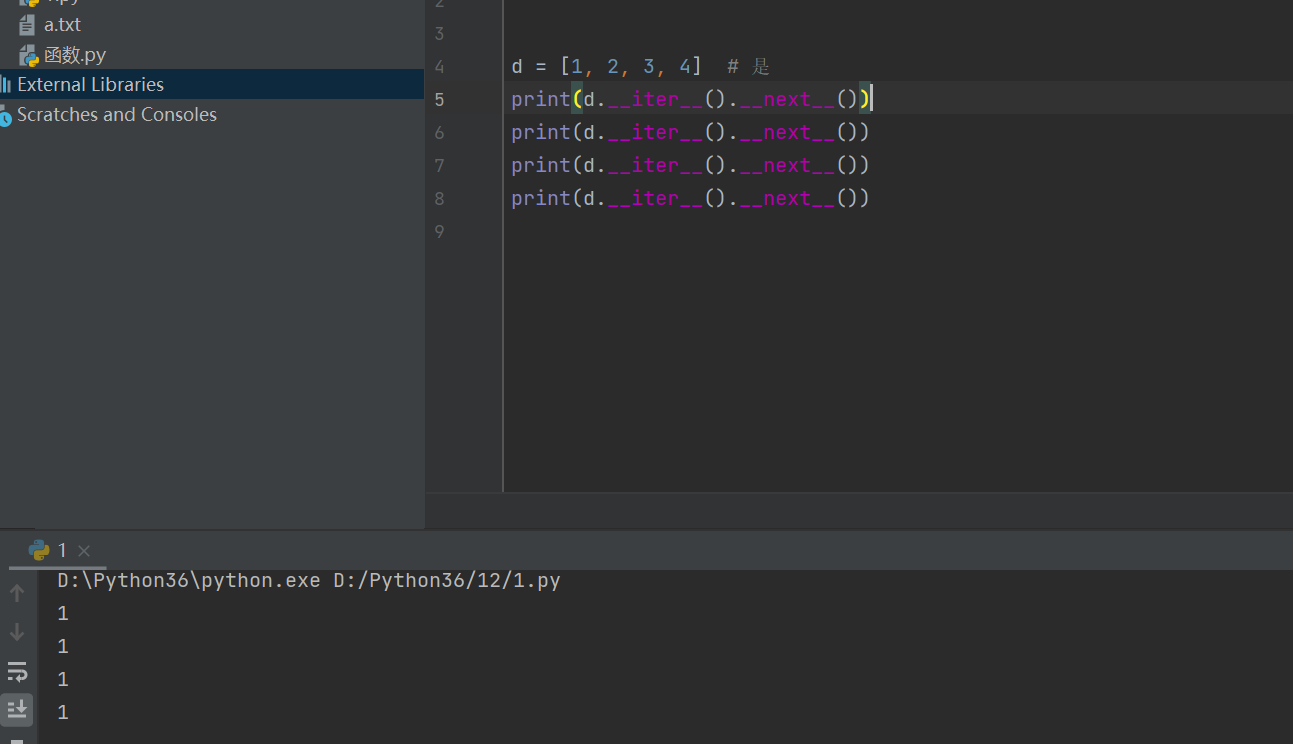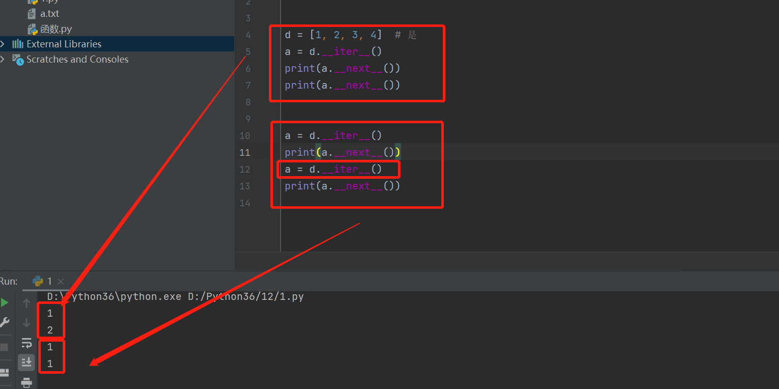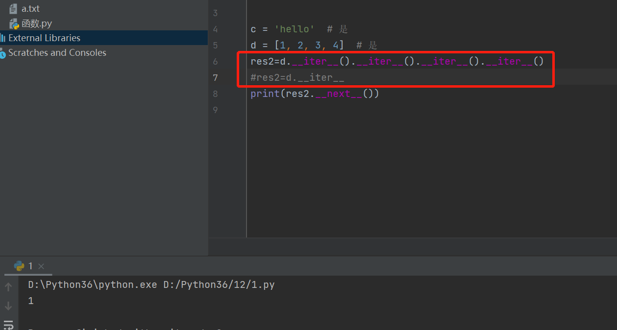 # 对应一个可迭代对象,可以连续多次__iter__(),得到的结果还是本身