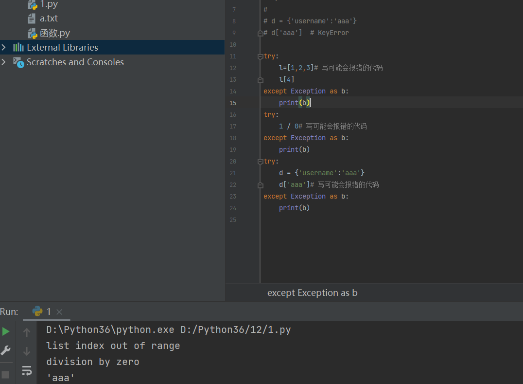 异常就是错误发生的信号,如果不对该信号做出处理,匿名之后的代码都不能正常执行