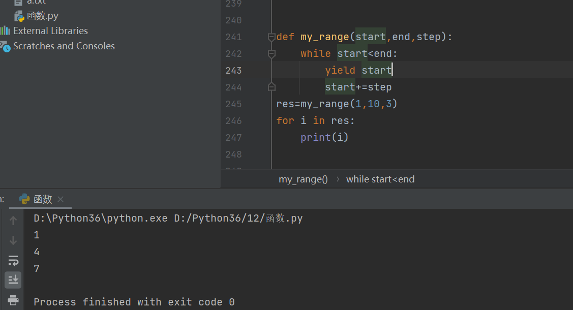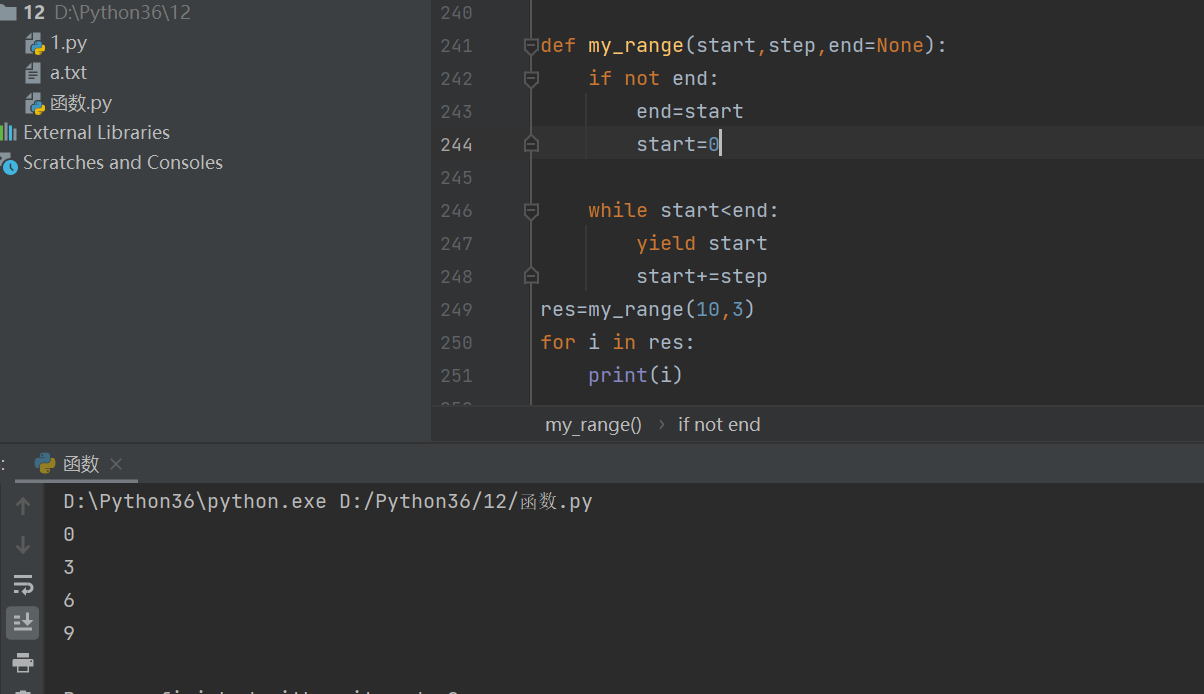 结合生成器实现range功能