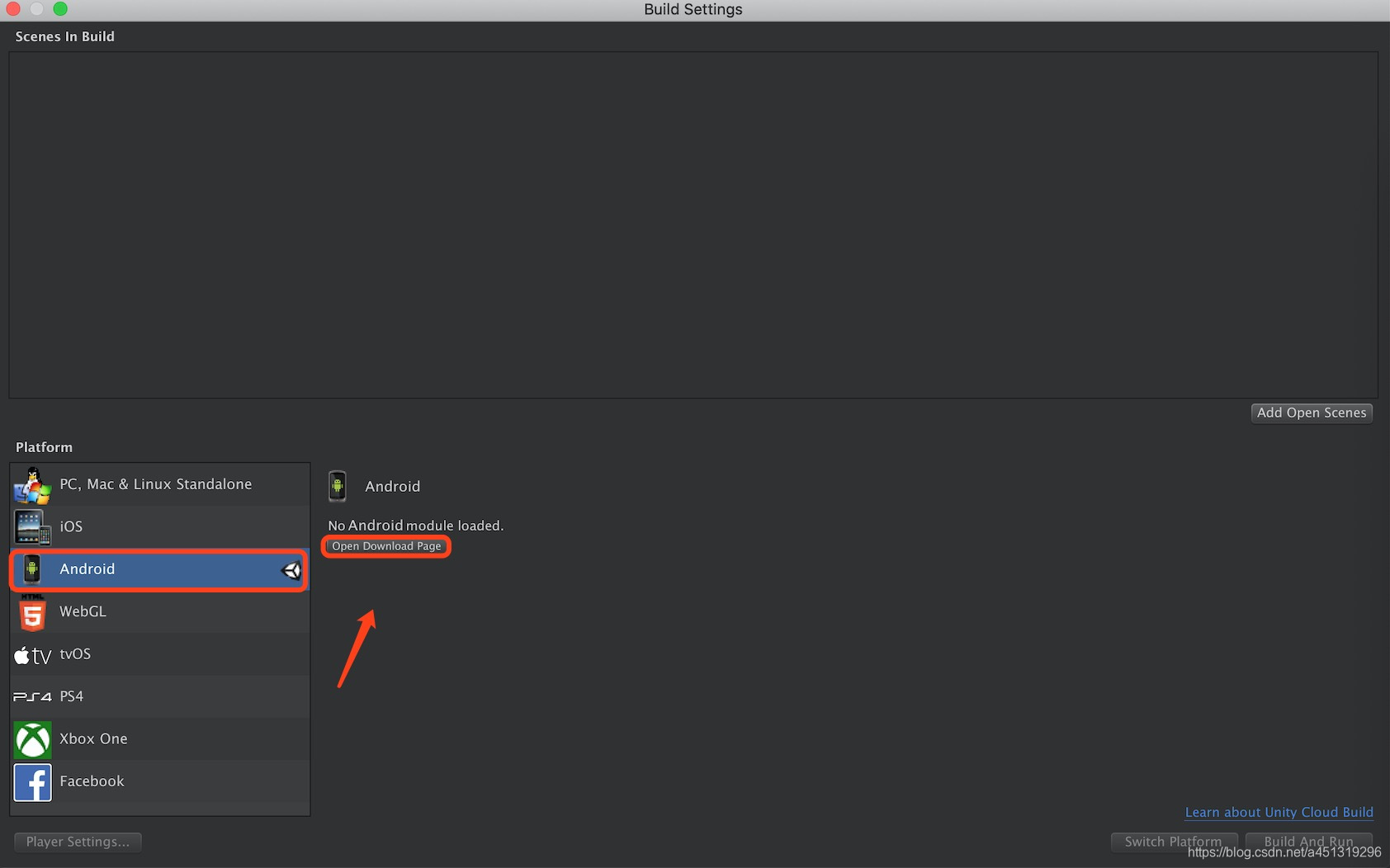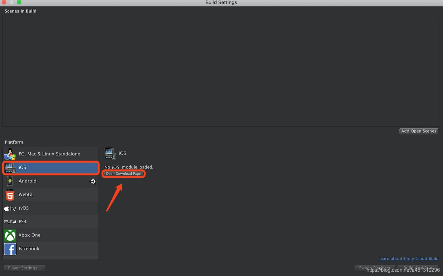 2.选择iOS->Open Download Page 下载iOS发布环境