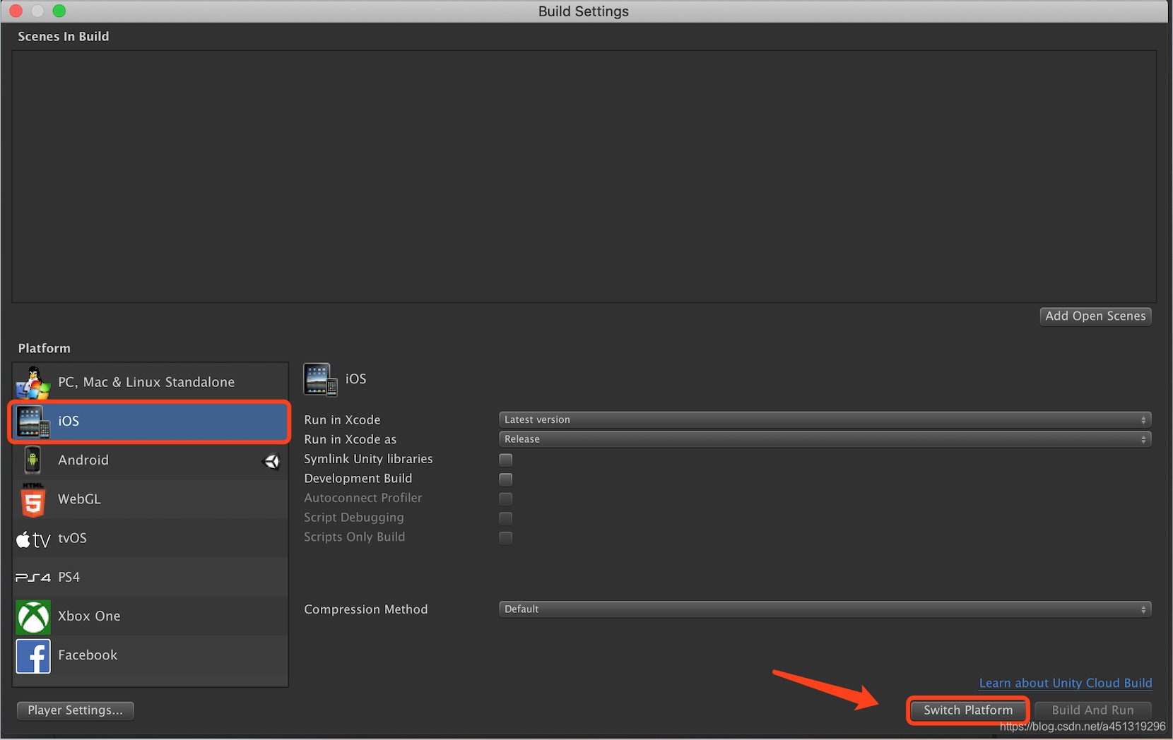2.将发布平台切换为iOS
