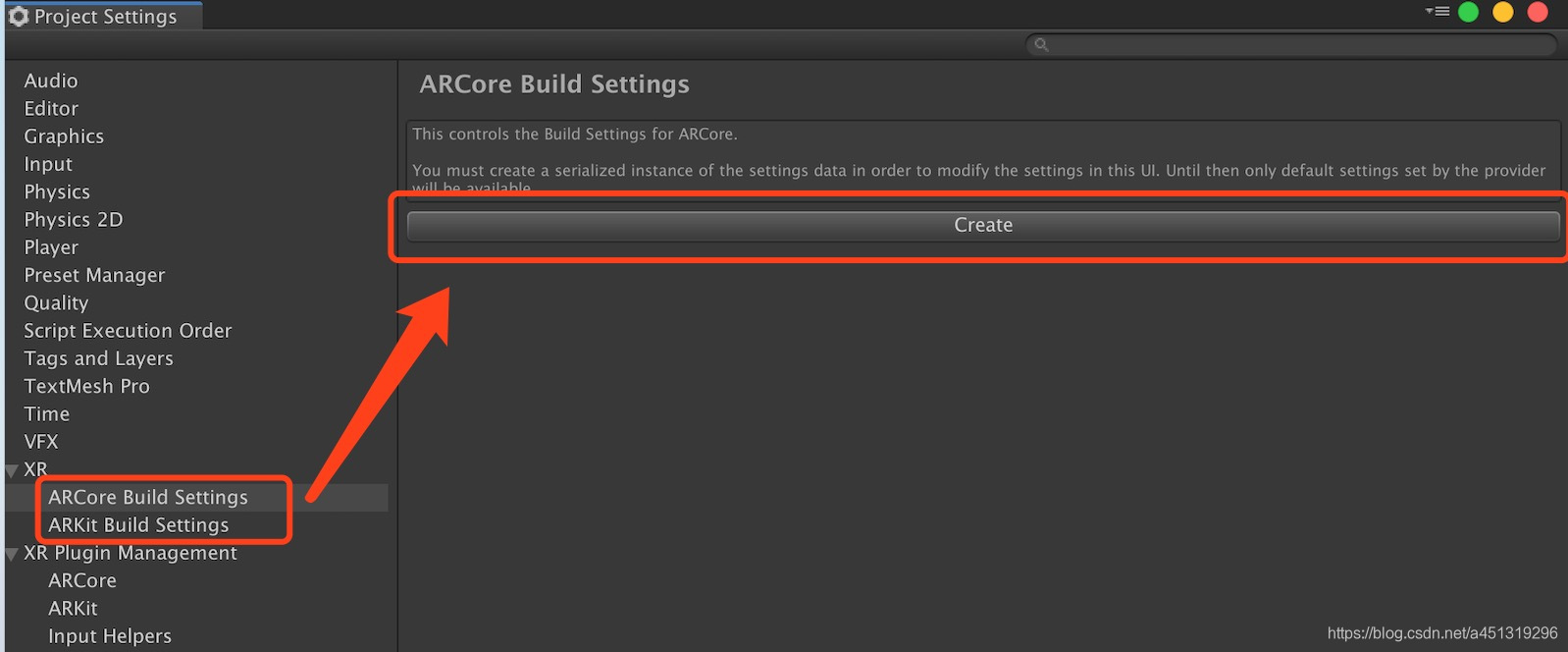 2.点击“Create”创建一个 ARCoreSettings,选择一个路径保存(苹果设备创建 ARKitSettings )