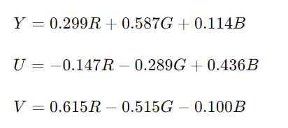 V (Chrominance): 色度分量,表示红色与亮度的差异。
