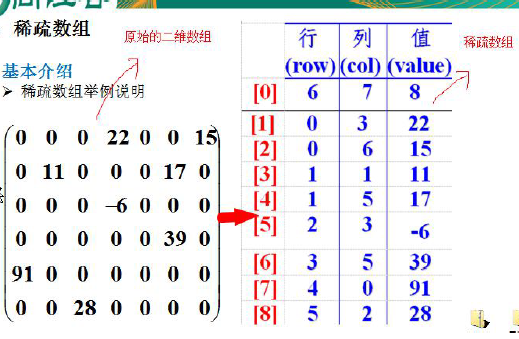 当数组中大部分元素为0,或者为相同元素时,可以用稀疏数组保存该数组元素