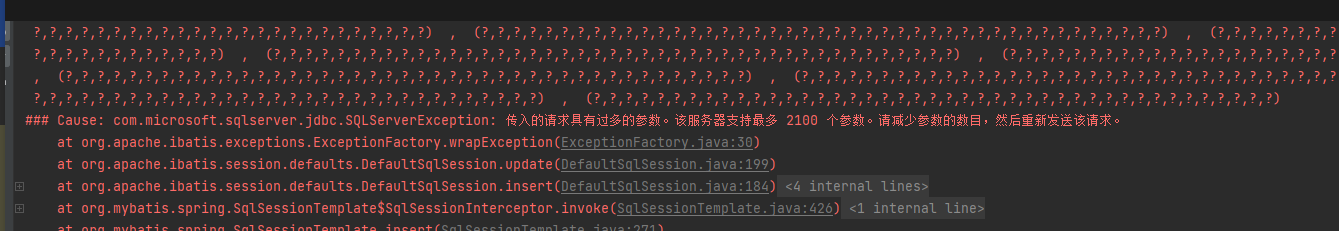 记录一次批量操作数据库,sqlServer服务器参数过多问题。