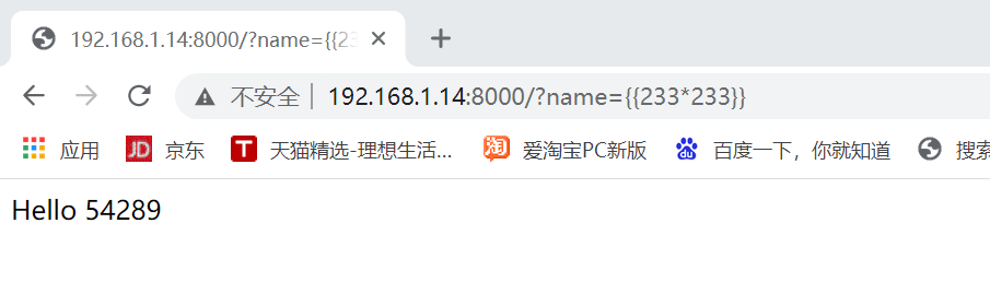 4、页面返回54289,证明存在ssti漏洞(计算233*233表名将name值当做命令来执行)