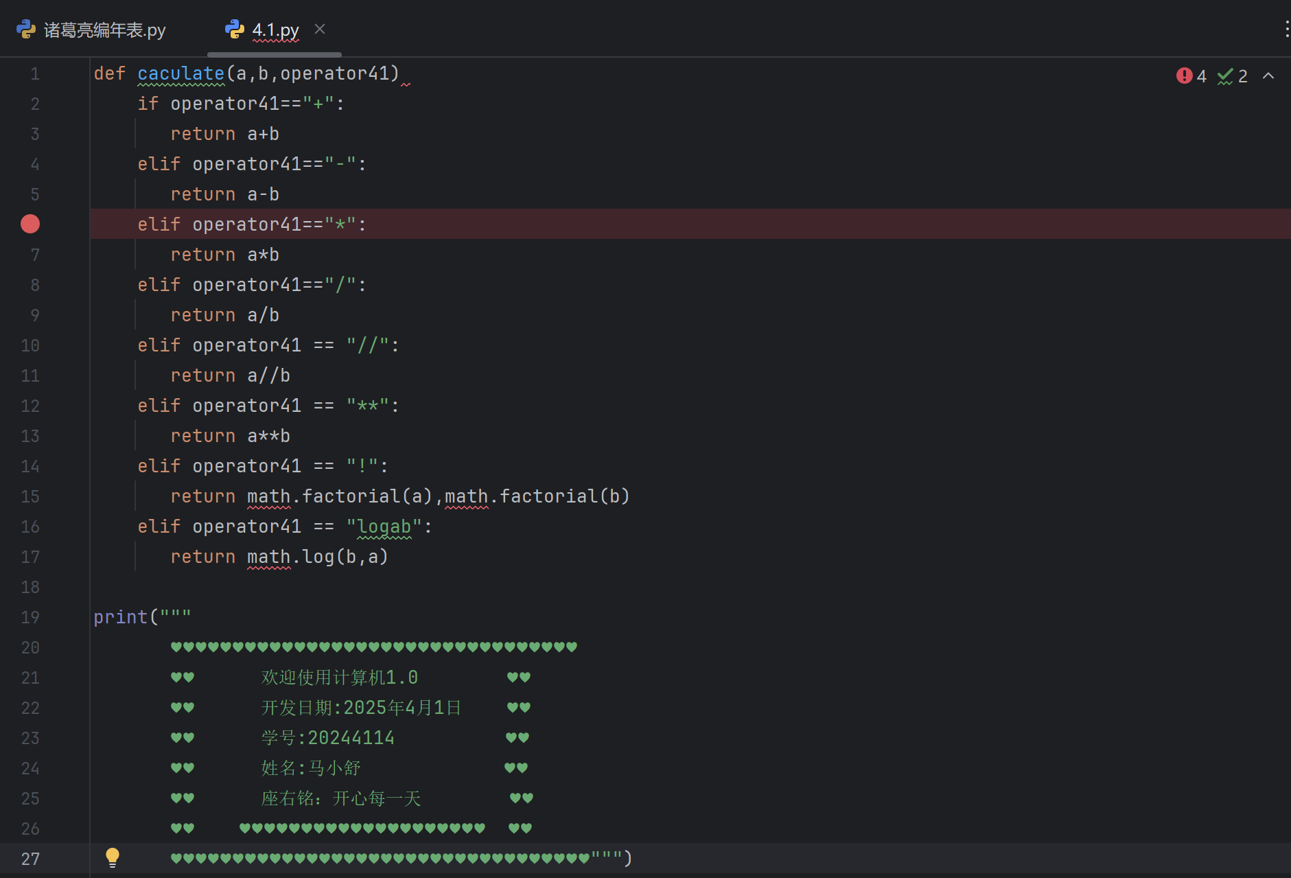 (2)利用判定语句对operator41进行细分,使得用户输入不同运算符时function执行相应的正确运算。