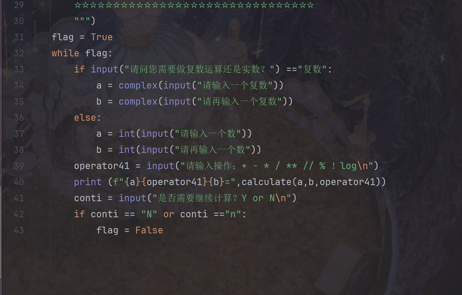 (3)用flag标记运算何时停止,并列举出operator41所有可能的输入情况,方便用户进行运算选择以及推出运算。