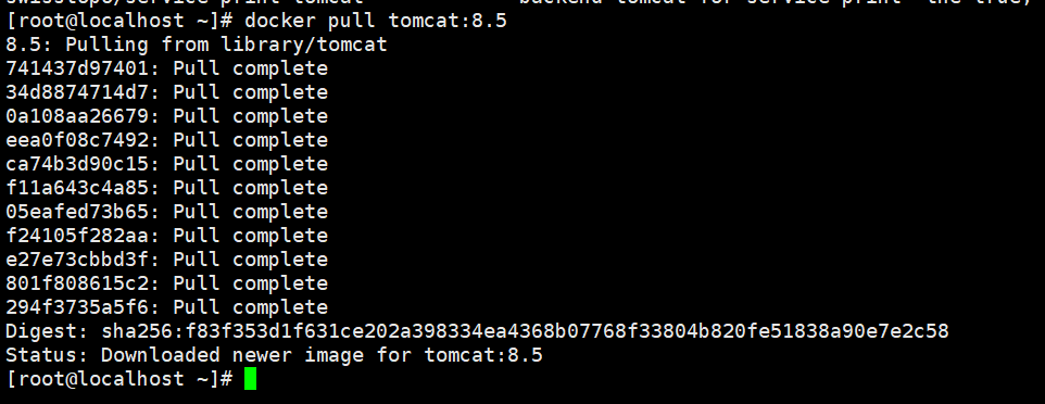 拉取tomcat8.5版本的镜像命令:docker pull tomcat:8.5
