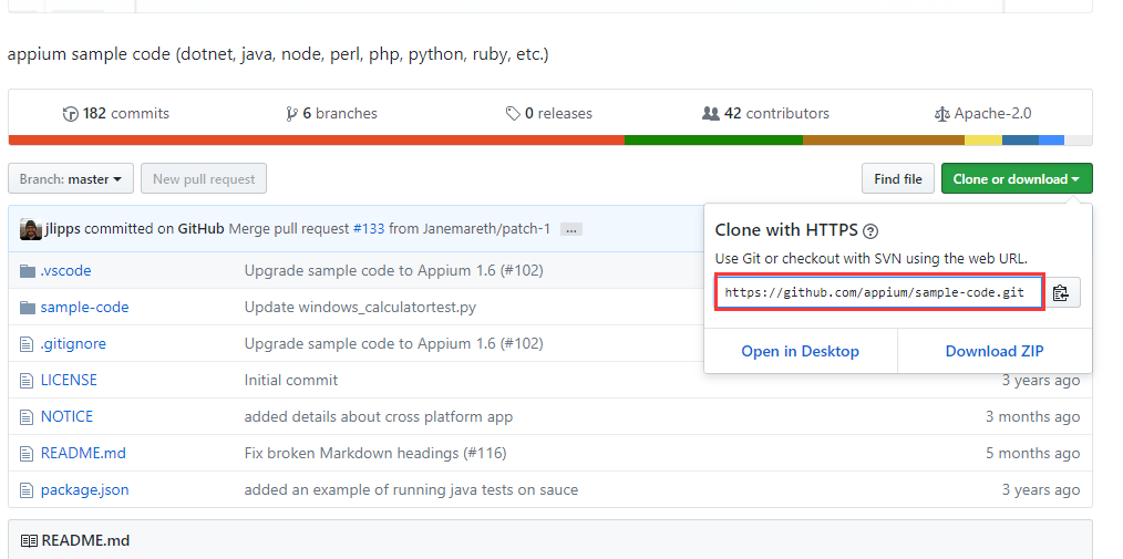 1.github上Appium的案例源码地址:https://github.com/appium/sample-code.git