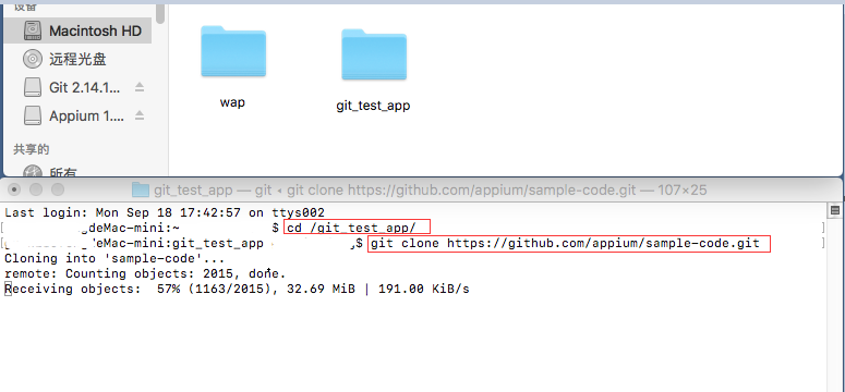 3.在mac本地新建一个文件夹,如:git_test_app,把代码clone到本地