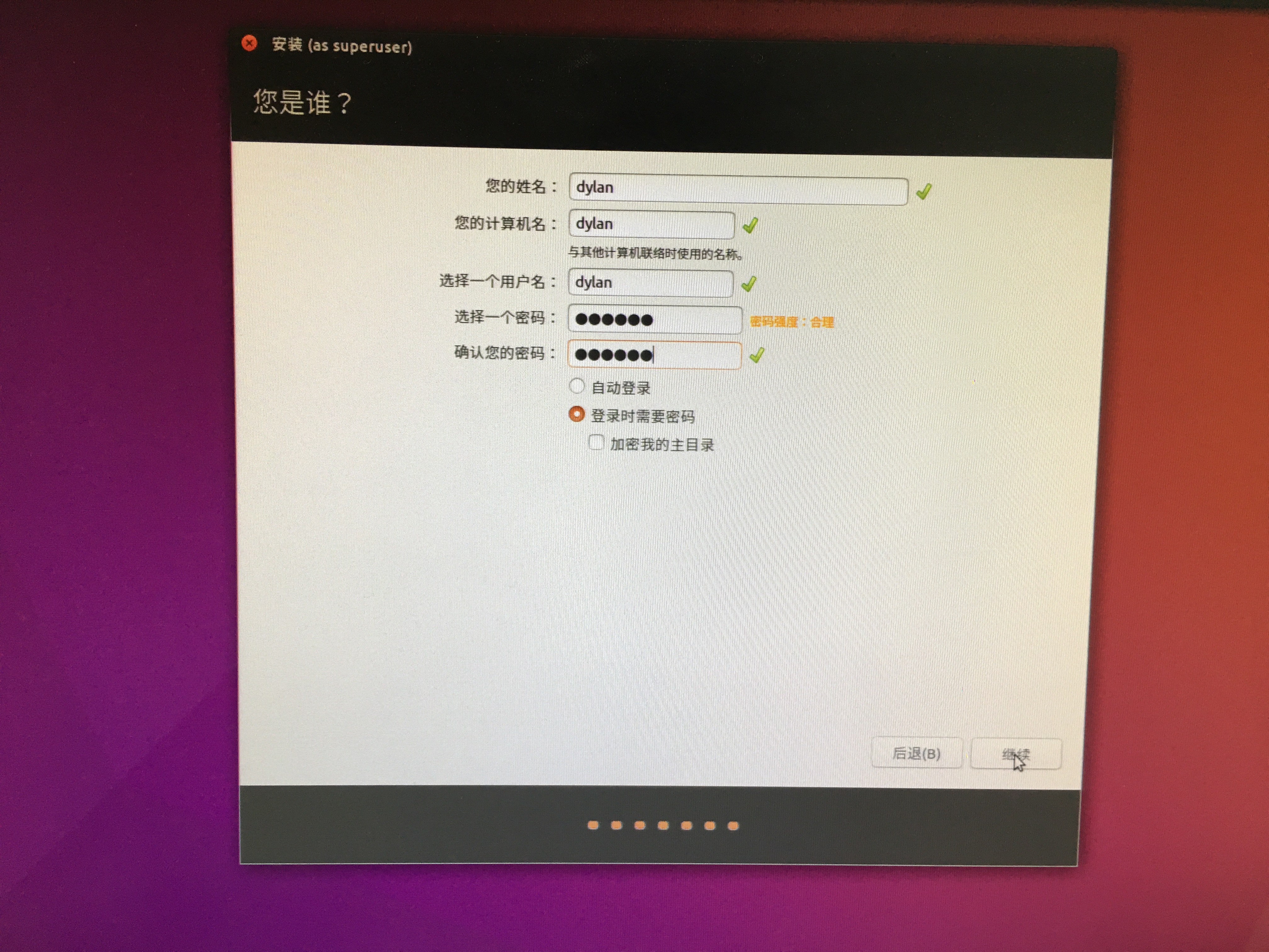 PS:如果说需要安装双系统可以选其他选项,前提是硬盘有空闲分区, 我没条件做, 所以没有什么记录, 但是有几点注意: